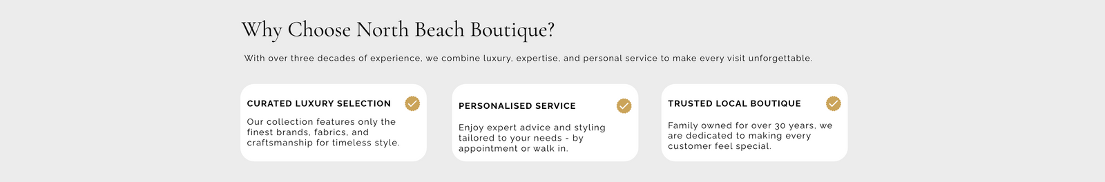 Discover timeless, high-quality dresses and accessories at North Beach Boutique. Book your appointment or shop our curated selection of luxury eveningwear, cocktail dresses, and exclusive accessories. Exceptional service, expert styling, and a welcoming experience await you.