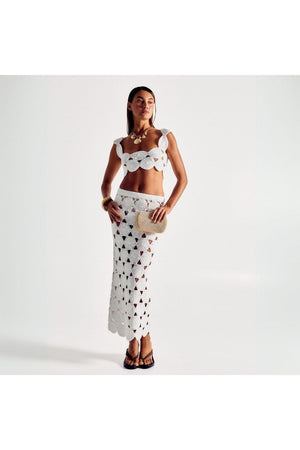Made from a metallic woven rope and meticulously sewn together using a coiling technique, the MARTINA clutch is guaranteed to get noticed. The rounded rectangle shape fits comfortably in the palm of your hand. Wear it as a clutch by tucking the shoulder chain inside or wear it as a shoulder bag for those hands free moments.