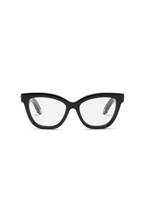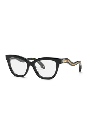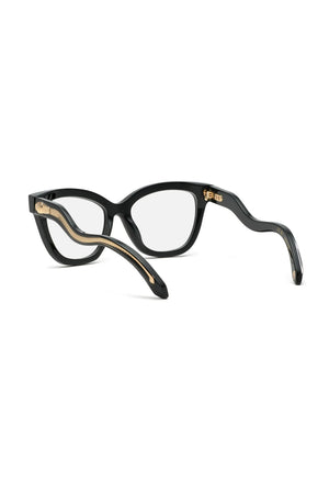 These Roberto Cavalli optical glasses feature a sleek shiny black frame accented with elegant gold trim detailing. Designed for both style and comfort, they offer a sophisticated look suitable for professional and everyday wear. The refined craftsmanship ensures durability while enhancing your visual appeal with a touch of luxury.