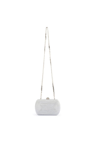 Made from a metallic woven rope and meticulously sewn together using a coiling technique, the MARTINA clutch is guaranteed to get noticed. The rounded rectangle shape fits comfortably in the palm of your hand. Wear it as a clutch by tucking the shoulder chain inside or wear it as a shoulder bag for those hands free moments.