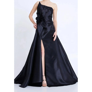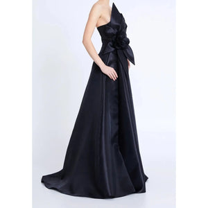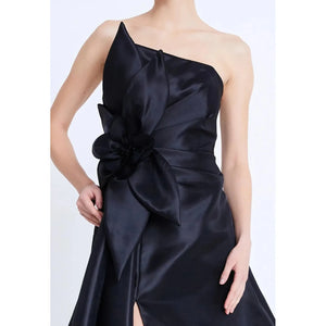 Expertly crafted, the ALIITA | NOIRA dress boasts an elegant black design that exudes beauty and style. Its asymmetrical and strapless design adds a touch of uniqueness, making it a must-have for any fashion-forward individual. Perfect for any special occasion, this dress is sure to make a statement.