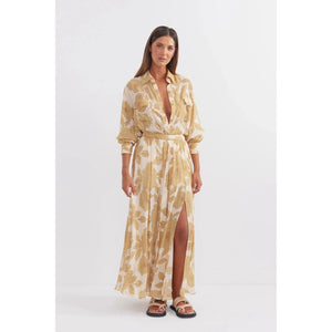 The Darling Shirt by PASDUCHAS is made in our exclusive golden floral print on viscose chiffon. It features a relaxed cut with a traditional collar balanced by dropped sleeves for an easy fit. The shirt has a classic button-and-buttonhole centre front closure and cuffs. Oversized patch pocket details complement the sheer chiffon, creating a light spring feel.