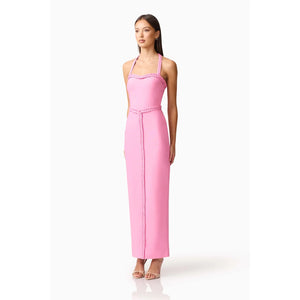 Make a statement in the Coralene Halter Gown in Pink – a sleek, form-fitting silhouette crafted to celebrate modern femininity. Designed with a flattering halter neckline, this gown sculpts the figure with precision thanks to its fitted shape and double knit fabrication. The fabric’s high stretch ensures comfort without compromising structure, making it an ideal choice for events that call for elegance with ease.