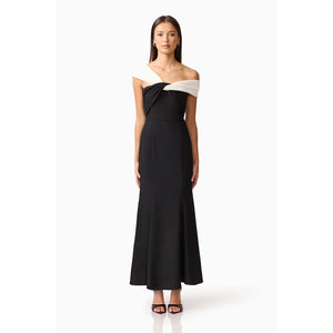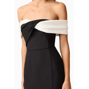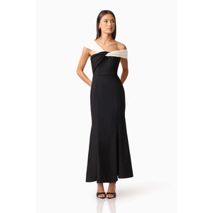 Whether gliding across a gala floor or posing at a formal event, the Ruby gown is designed to impress. The off-the-shoulder straps beautifully frame your neckline, while the asymmetric cut adds a contemporary twist. With its bold black-and-white contrast, fitted elegance, and sweeping skirt, this gown is a memorable choice for once-in-a-lifetime occasions.