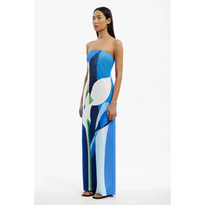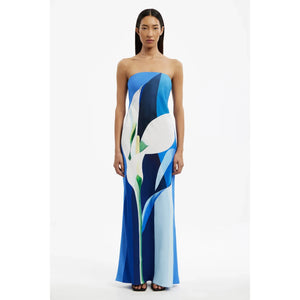 Bold yet refined, the Mora Strapless Dress in Calla Lily is a statement silhouette designed for summer occasions. Featuring a striking floral placement print across the front and a clean satin back, this strapless style is structured with a boned underbodice for shape and support. Finished with a centre-back invisible zip, it's a standout option for day-to-evening dressing.