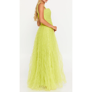The ALIITA EMEL in chartreuse showcases a sleek, slender silhouette accentuated by a delicate, gorgeous lace bottom. This combination adds a refined elegance while highlighting intricate craftsmanship, making it an expert choice for those seeking unique and sophisticated style.