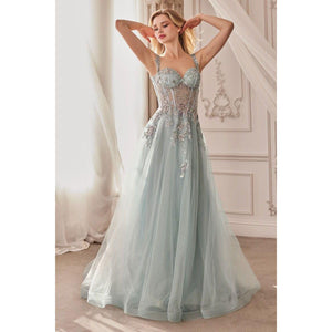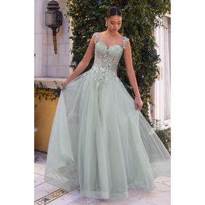 Embark on a fairytale in this off-the-shoulder A-line gown—a whimsical marvel that dances with dreams. The sheer structured bodice, adorned with a floral motif, is an ethereal canvas of enchantment. A sweetheart neckline adds a touch of romance, framing the décolletage with grace. As you twirl, the layered tulle skirt creates a magical cascade, a dance of whimsy and elegance. It's more than a gown; it's an invitation to step into a world where floral fantasies and layered tulle dreams converge. With each layer, let the dress weave a tale of enchantment, turning your every movement into a waltz of magic.