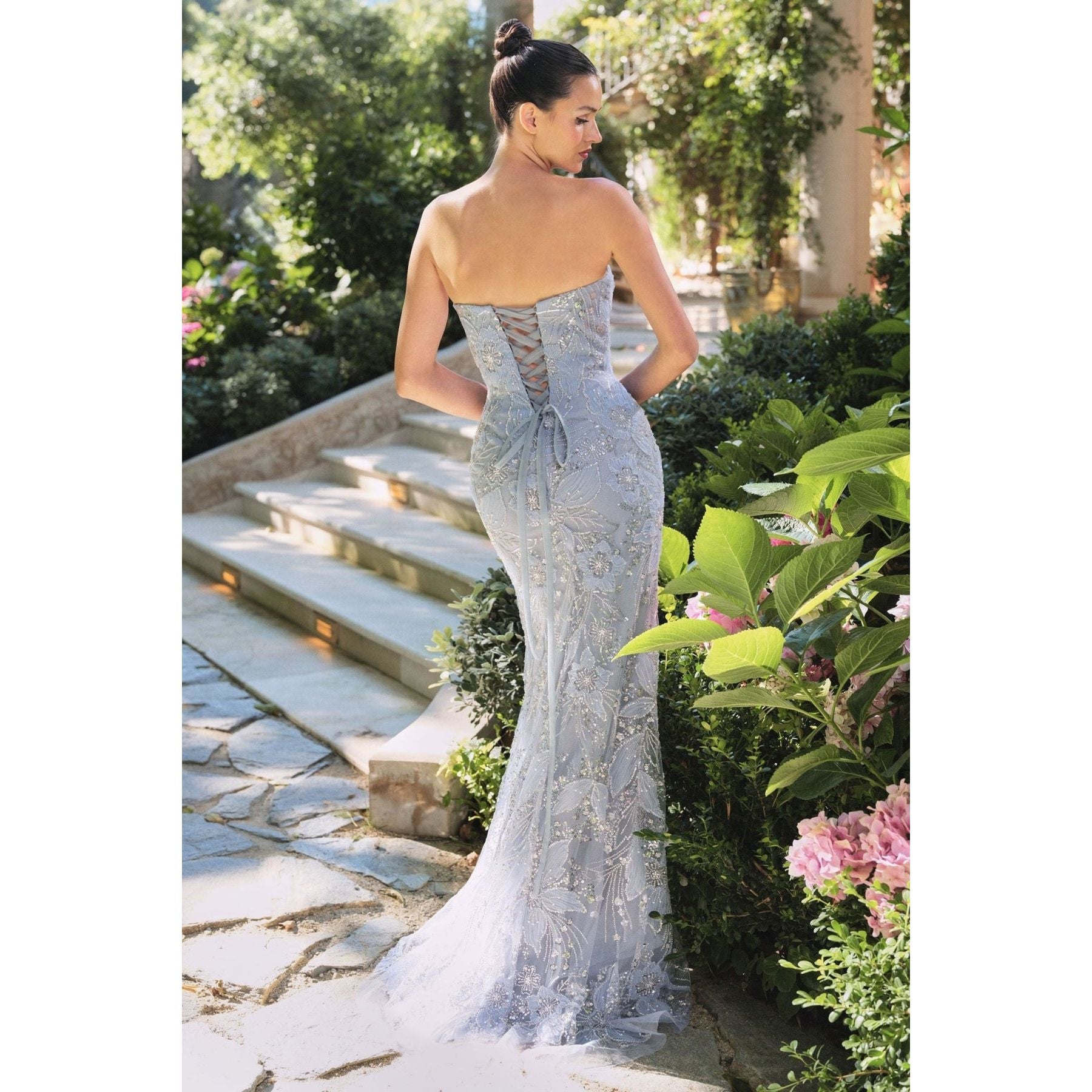 Bring out your inner glamour queen in this exquisite satin embellished corset dress. This figure-hugging satin gown is perfect for special occasions and will ensure you are the centre of attention in any setting. Showcasing an eye-catching strapless design with intricate daisy beaded motifs on the bodice and pleated satin cups, this dress promises to flatter every curve as it molds to your shape. Its delicate sheer boned bodice supports a back corset lace up closure, while the soft satin fabrication cascades down to a leg slit for extra sass. Handsomely contoured to complete a beautiful sultry look, this stunning corset dress will turn heads wherever you go! Dare to be daring and make a bold statement in this sexy, glamourous style tonight!