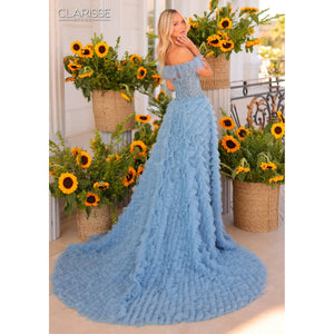 Be the centre of attention with Style #811332! The glitz and glam with this fit and flare strapless dress will make you stand out in any event. Featuring stunning silver accents on a slate blue gown, it also comes with a detachable off-shoulder ruffles and overskirt for a touch of versatility. Elevate your fashion game with this high fashion statement piece.
