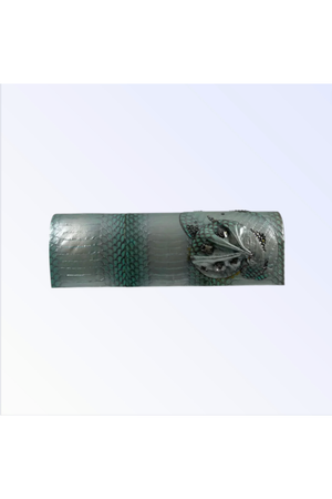 Made from genuine python, this clutch is sure to make a statement! Crafted delicately with a touch of sparkle, finish your look with a bang!