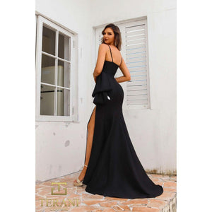 This TERANI gown features a black and white colour scheme, with a sophisticated neckline and side detail. Elevate your style with this stunning and chic dress, perfect for any formal event.
