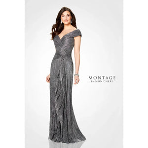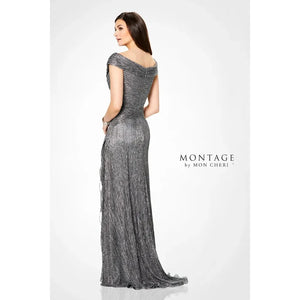 Experience elegance with this expertly tailored stretch sheath featuring cap sleeves and a distinctive wide V-neckline accented by a portrait collar. The asymmetrically ruched bodice enhances silhouette definition, while the dropped waistline and side cascading ruffles create dynamic movement. Completing the look, a graceful sweep train adds a refined, dramatic finish perfect for any red carpet occasion