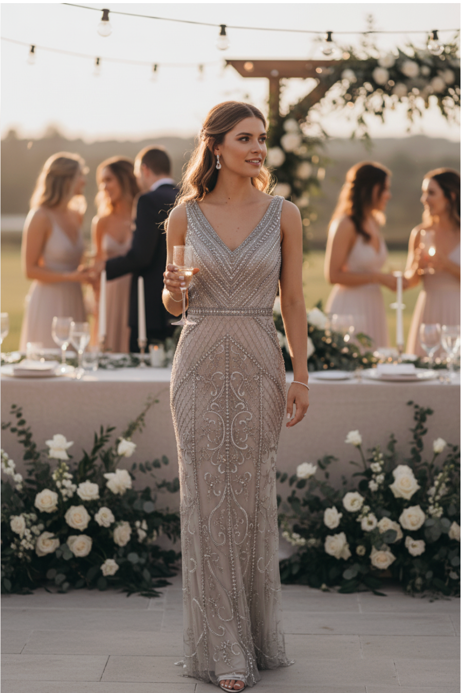 Introducing the ALIITA  V-neck oyster gown, complete with a sheer overlay and sequin detail. Designed with thick straps for comfortable bra coverage. Effortlessly elegant and versatile, perfect for any formal event.