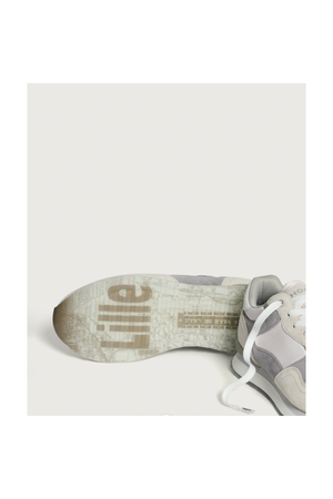 Retro-style sneaker in a combination of colors and materials. Logo detail on the back. Printed sole. Lace-up closure.