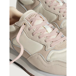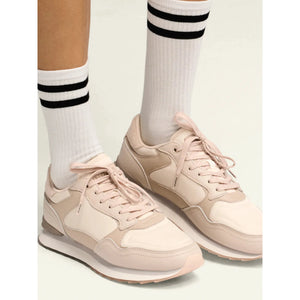 Retro-style sneaker with a combination of colors and materials. Back section with logo detail. Printed sole. Closure with laces.