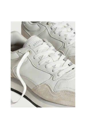 Retro-style sneaker with a combination of colors. Back section with logo detail. Printed sole. Closure with laces.