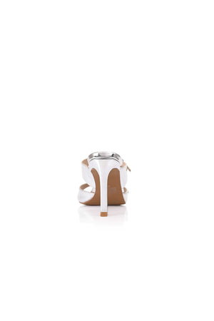 For a dressier touch, Edie in silver metallic is your go-to sandal. The stiletto heel and double-strap design exude elegance, while the adjustable straps ensure a perfect fit. The dainty clasps add embellishment, and the almond toe enhances its refined design, making it an ideal choice for dressier occasions.