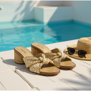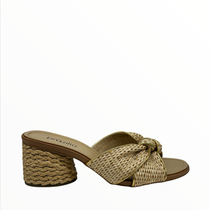 The BRAZILIO | HELENA slip-on features a sophisticated woven design in beige and tan, offering a natural, textured look. Its thicker heel provides enhanced stability and support, making it ideal for extended wear without sacrificing style. Perfect for effortlessly elevating both casual and dressy outfits, this shoe combines comfort with expert craftsmanship.
