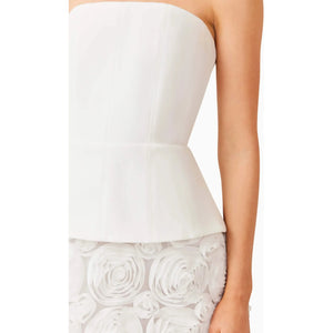 The carefully constructed design ensures a fit that flatters and enhances your figure, while the timeless white hue keeps it versatile and stylish. The dress is complete with an invisible center back zipper for a seamless finish, making it as easy to wear as it is stunning.