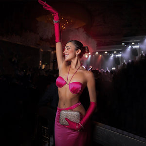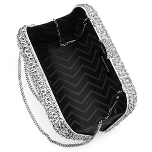 With its curved lines and glossy hardware, the CASEY clutch is a Red Carpet showstopper. The crystals are super sparkly, and the rounded square shape fits comfortably in the palm of your hand. Wear it as a shoulder bag or wear it as a clutch by tucking the shoulder chain inside.