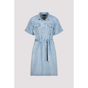 The MONARI Denim Mini Dress combines classic denim with a collared neckline and silver button accents for a polished look. Featuring a flattering tie at the waist and thoughtfully designed pockets, this dress balances style and practicality with expert craftsmanship.