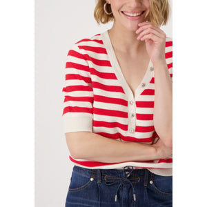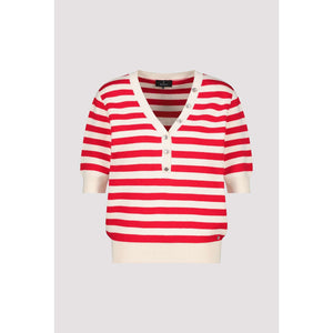 The MONARI V Neck Pullover showcases a striking red striped design and an expertly crafted deep V neckline. Its refined construction combines bold style with exceptional quality, making it a standout piece for any wardrobe.