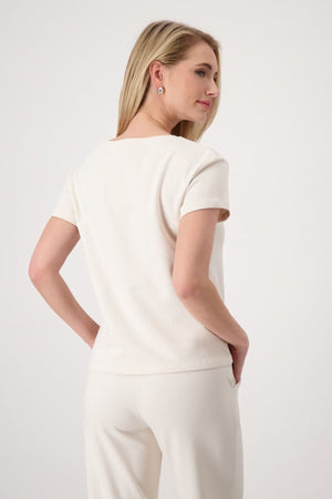 The MONARI Round Neck Blouse features a classic round neckline and 1/4 sleeves, designed with a button-down centre for a refined finish. This blouse pairs effortlessly with the MONARI trousers, creating a cohesive and polished ensemble suitable for both professional and casual settings.